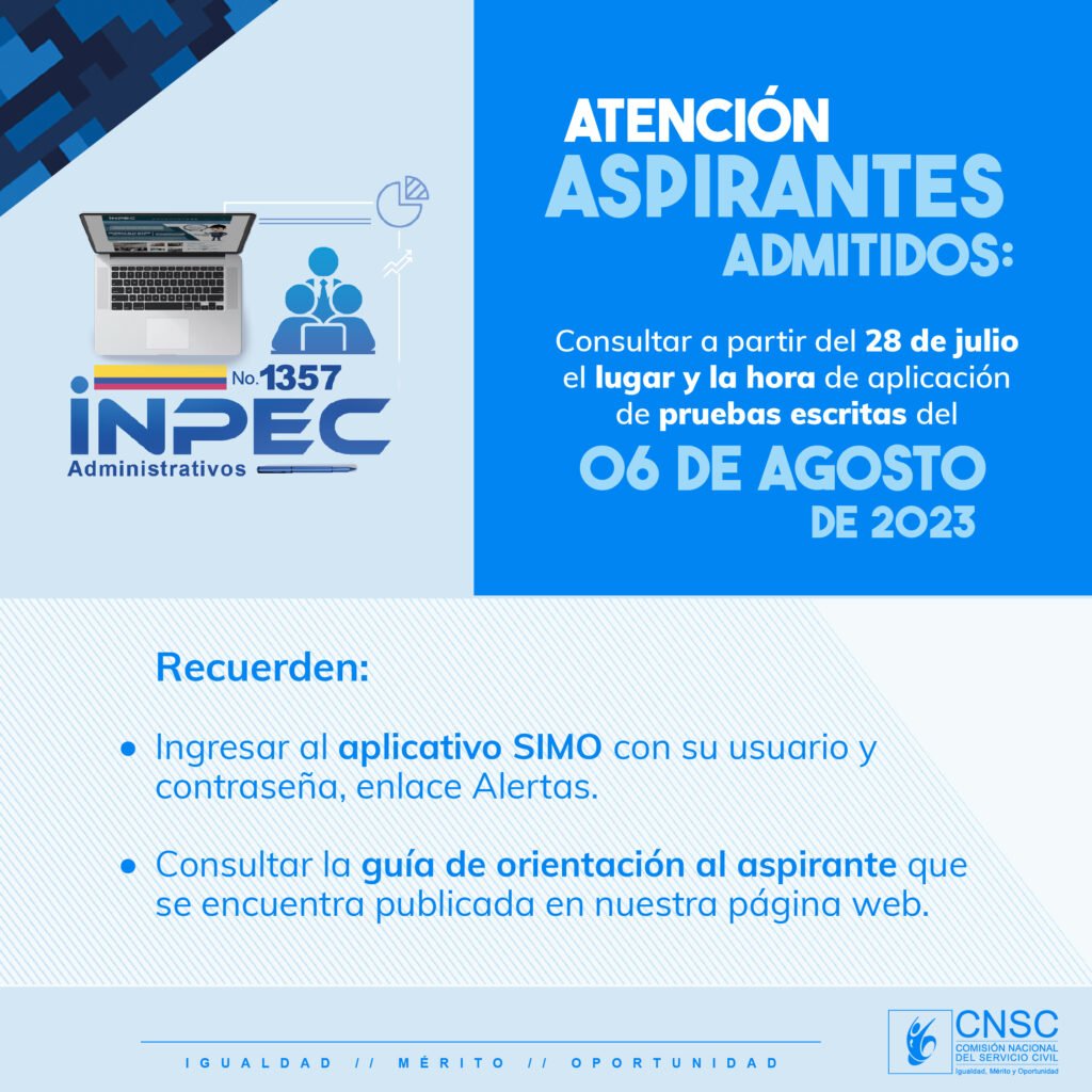 18.065 aspirantes están citados este domingo 06 de agosto para la aplicación de pruebas escritas del proceso de selección INPEC Administrativos