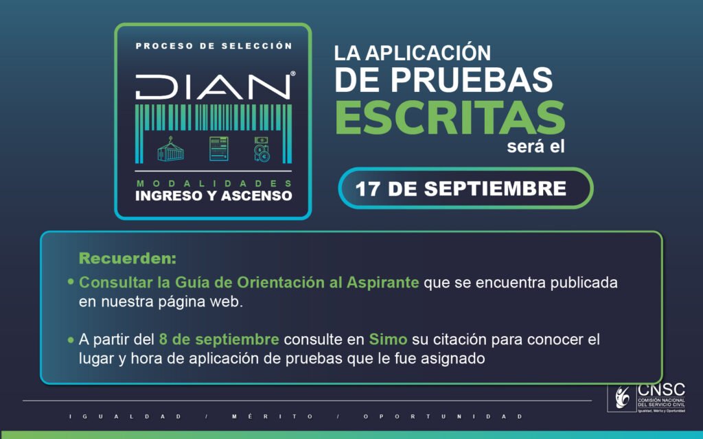 El 17 de septiembre se realizará la jornada de aplicación de pruebas escritas del proceso de selección DIAN