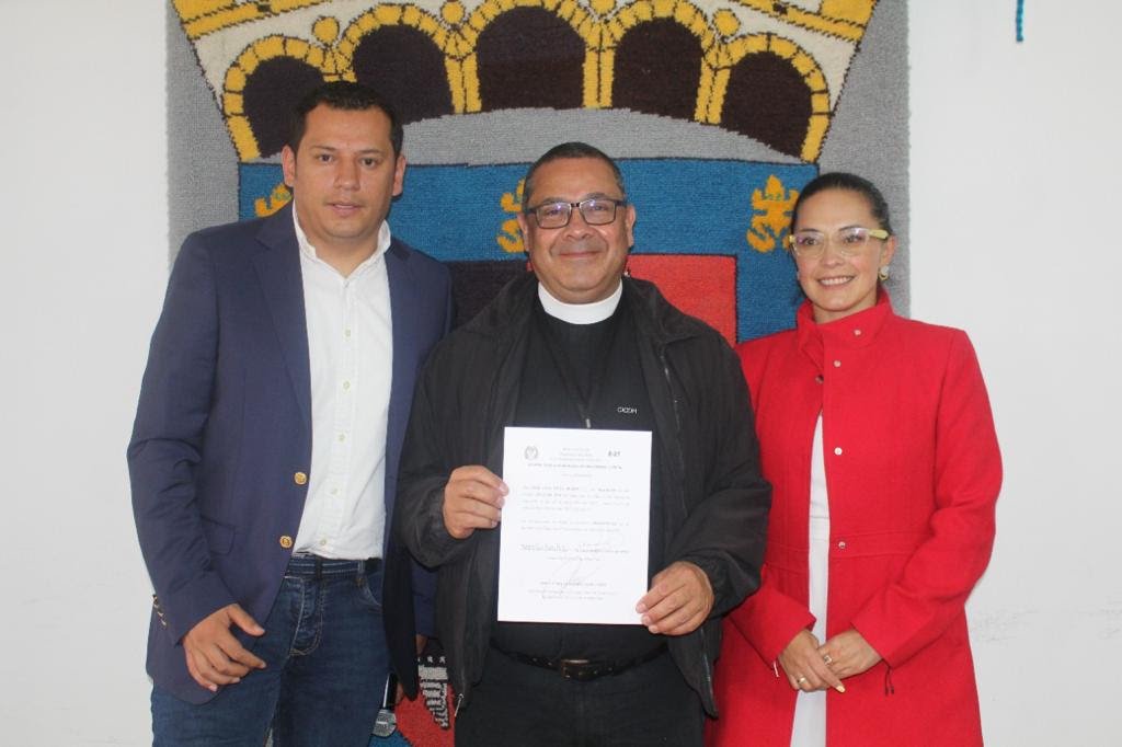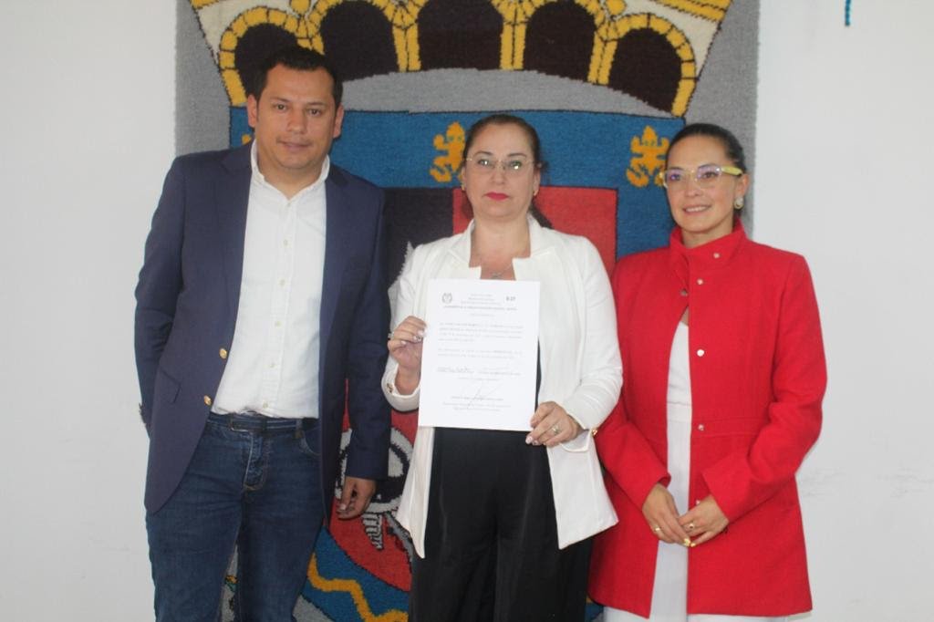 nuestro alcalde Luis Carlos Segura Rubiano, junto a la Personera Faisuly Blanco y el Registrador Jorge Enrique Ramírez, entregaron las credenciales